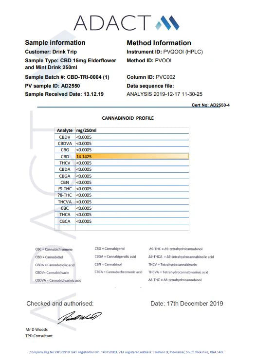 12 x TRIP 15mg CBD Infused Elderflower & Mint Drink 250ml