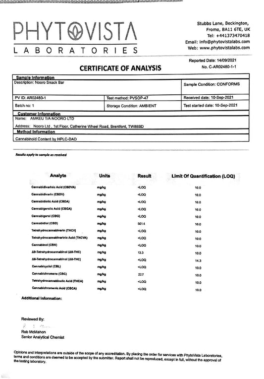 Nooro 25mg CBD Sour Cherry & Chocolate CBD Oat bar - 45g (BUY 1 GET 1 FREE)