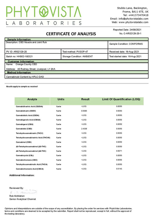 Orange County CBD 1000mg CBD Muscle And Joint Balm - 50ml