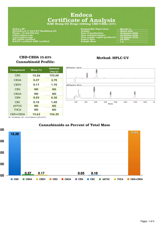 Endoca 1500mg CBD+CBDa RAW Hemp Oil Drops 10ml