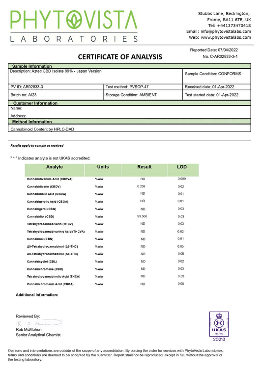 Aztec CBD Isolate 90% 1000mg CBD - 1g