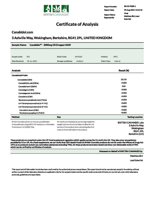 CBD by British Cannabis 2000mg CBD Raw Cannabis Oil - 10ml