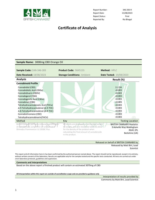 Hempura 3000mg Precision Sport CBD Broad Spectrum Oil Orange Flavoured - 30ml