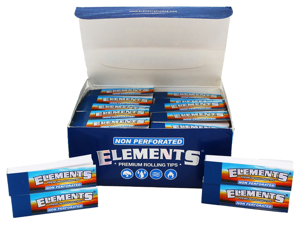 Non-Perforated Elements rolling paper tips. Chemical and chlorine-free. Without perforations at the start of their roll-up edge for expert rollers, these Element-style papers still make rolling easy!