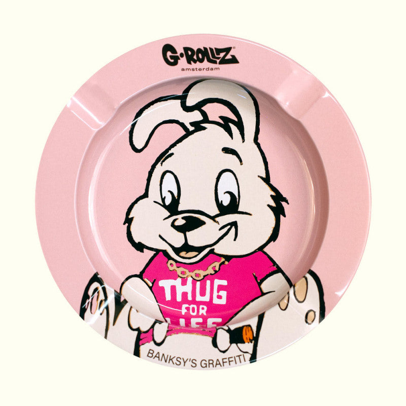 G-ROLLZ BANKSY GRAFFITI ASHTRAY - THUG FOR LIFE PINK BUNNY