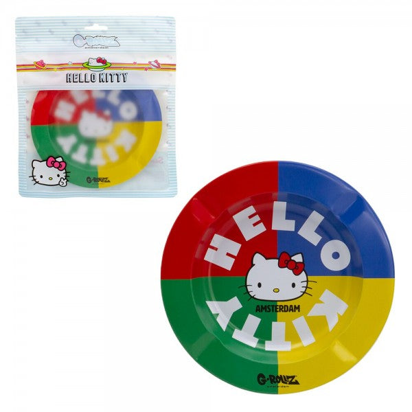 The G-Rollz Hello Kitty Range of Tin Ashtray, very lightweight tin ashtray with full colour print of logo. Ashtray 135mm in diameter. * For tobacco use only.