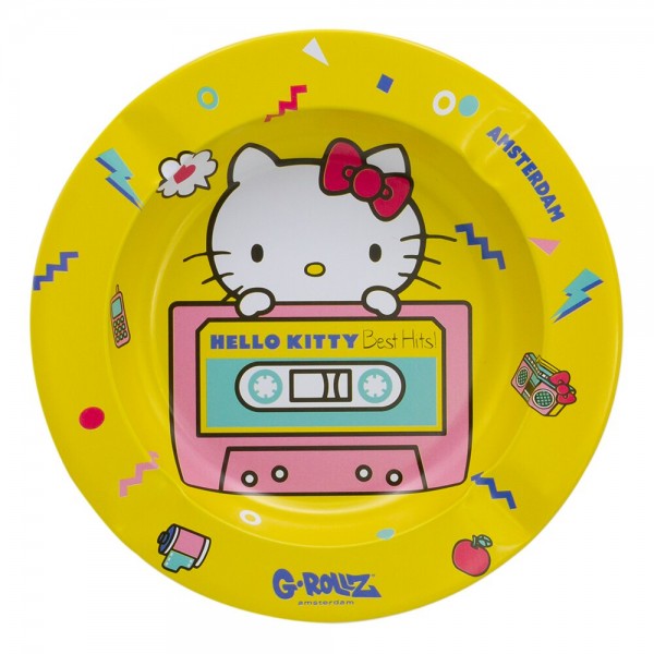 The G-Rollz Hello Kitty Range of Tin Ashtray, very lightweight tin ashtray with full colour print of logo. Ashtray 135mm in diameter. * For tobacco use only.