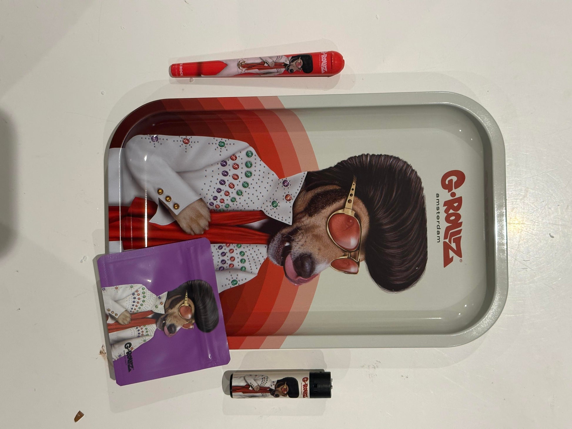 ROCK & ROLL IMPERSONATOR DOG METAL ROLLING TRAY BY G-ROLLZ - SMALL OR MEDIUM