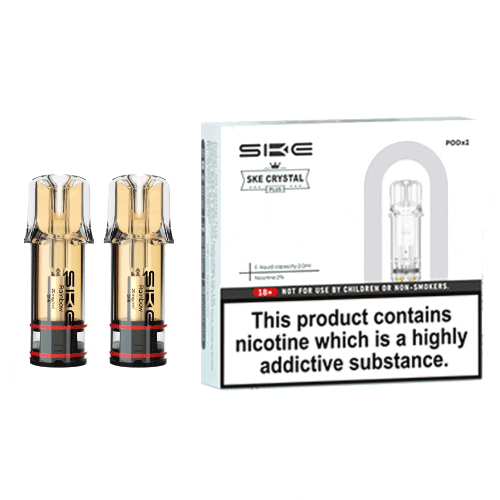 The SKE Crystal Plus prefilled pods are compatible with the SKE Crystal Plus prefilled pod kit. Since they’re prefilled with e-liquid, they’re easy to use and can be disposed of when empty. Each pod contains 2ml of salt nicotine e-liquid, which delivers a smoother throat hit. They’re also designed to create an MTL (Mouth To Lung) vape, which produces a smaller amount of vapour and has a feel that’s similar to a cigarette.