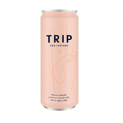 TRIP Peach Ginger is a lightly sparkling beverage infused with 15 mg of full spectrum CBD and powered by selected natural adaptogens for optimum balance (L-theanine, Ginseng, Turmeric Lemonbalm, Chamomile). TRIP drinks are all natural, no added sugar, vegan, dairy free and are 19 calories only per can.
